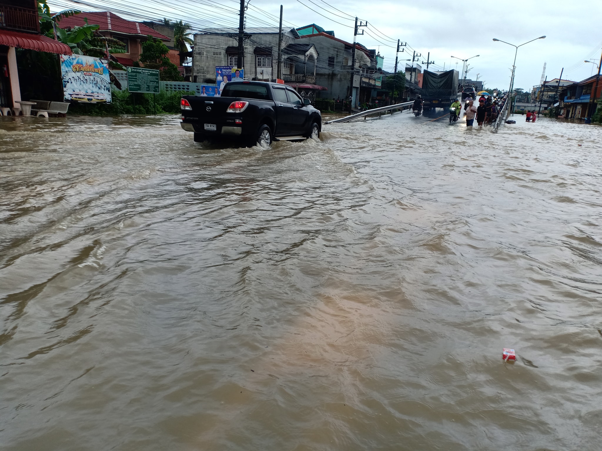 เมื่อวันที่ 2 ธันวาคม พ.ศ. 2563 เกิดฝนตกหนักทำให้เกิดน้ำท่วมในพื้นที่อำเภอชะอวด โดยเริ่มจากริมคลองฝั่งตะวันตก ระดับน้ำเพิ่มขึ้นเรื่อยๆจนท่วมบ้านเรือนริมคลองชะอวด ประชาชนขนข้าวของขึ้นไว้ที่สูง ในขณะที่ระดับน้ำเพิ่มสูงขึ้นเรื่อยแล้วก็เข้าท่วมทุกพื้นที่ในอำเภอชะอวด โรงเรียนต้องปิดทำการเรียนการสอน การสัญจรไปมาลำบากโดยเฉพาะบริเวณสะพานฝั่งตะวันตก ระดับน้ำสูงมาก กระแสน้ำไหลแรง น้ำท่วมอยู่ประมาณ 2 วันระดับน้ำก็ค่อยๆลดลงจนสถานการณ์กลับเข้าสู่ภาวะปกติ